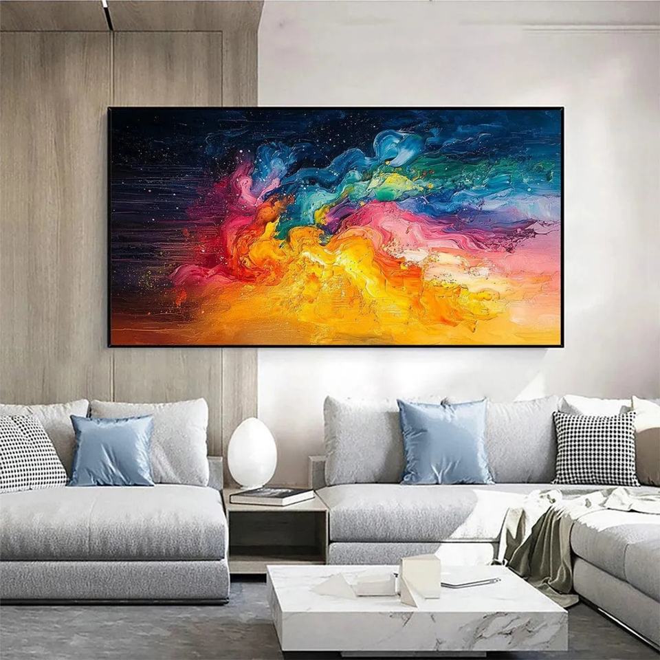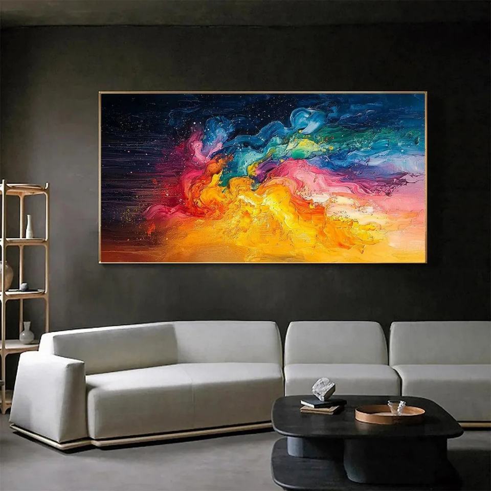 ภาพวาดอะคริลิครูปทรงนามธรรมรุ้งพาโนรามา Nova ของตกแต่งบ้าน ภาพวาดงานศิลปะขนาดใหญ่แบบ 3 มิติ วาดด้วยมือบนผืนผ้าใบ