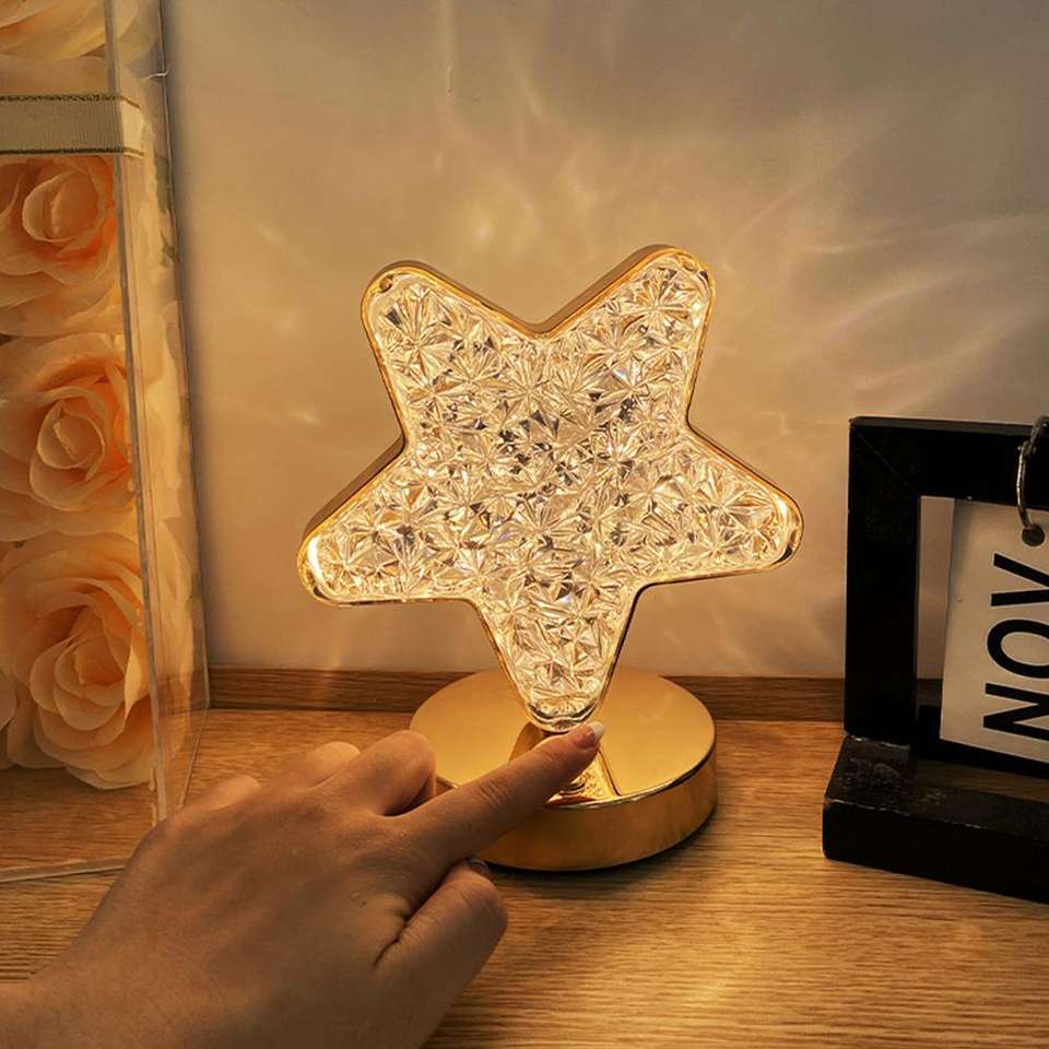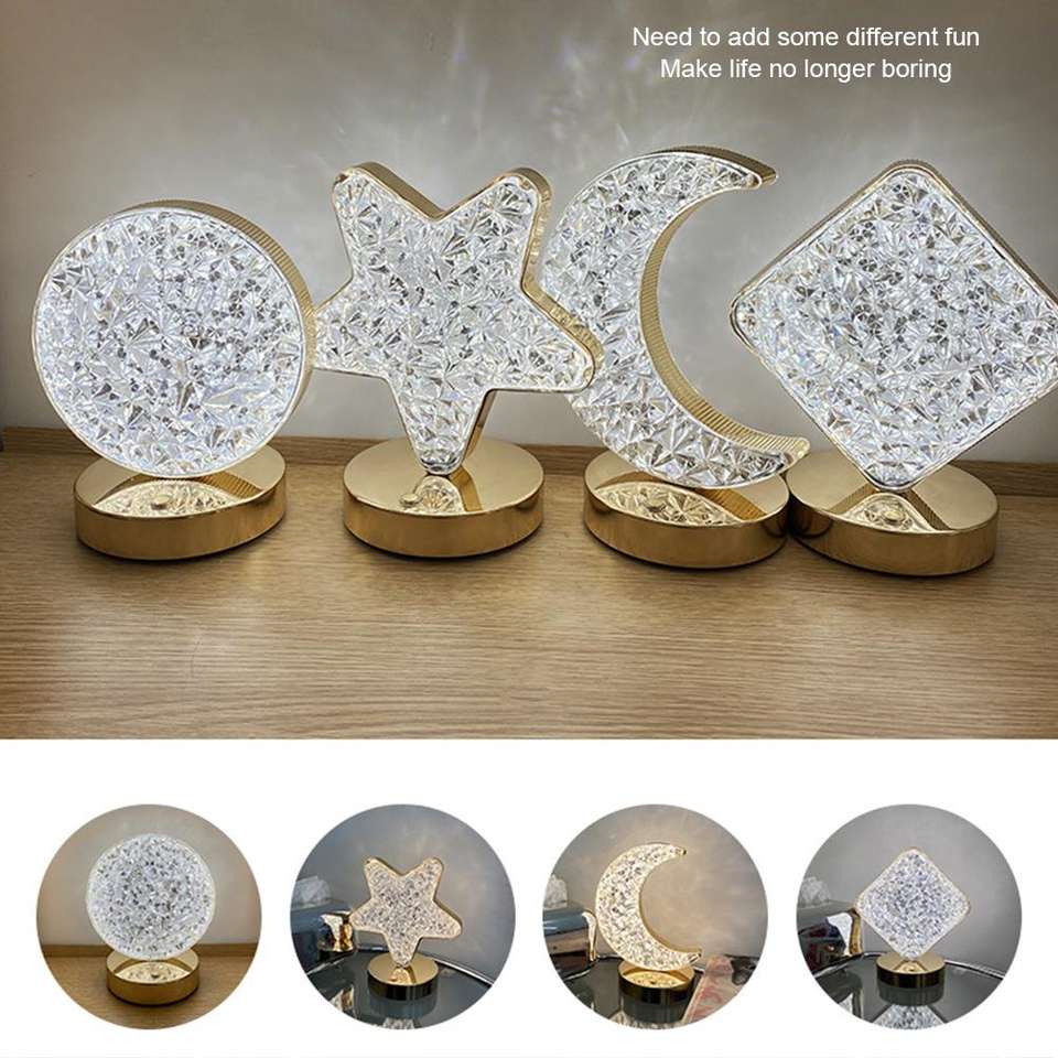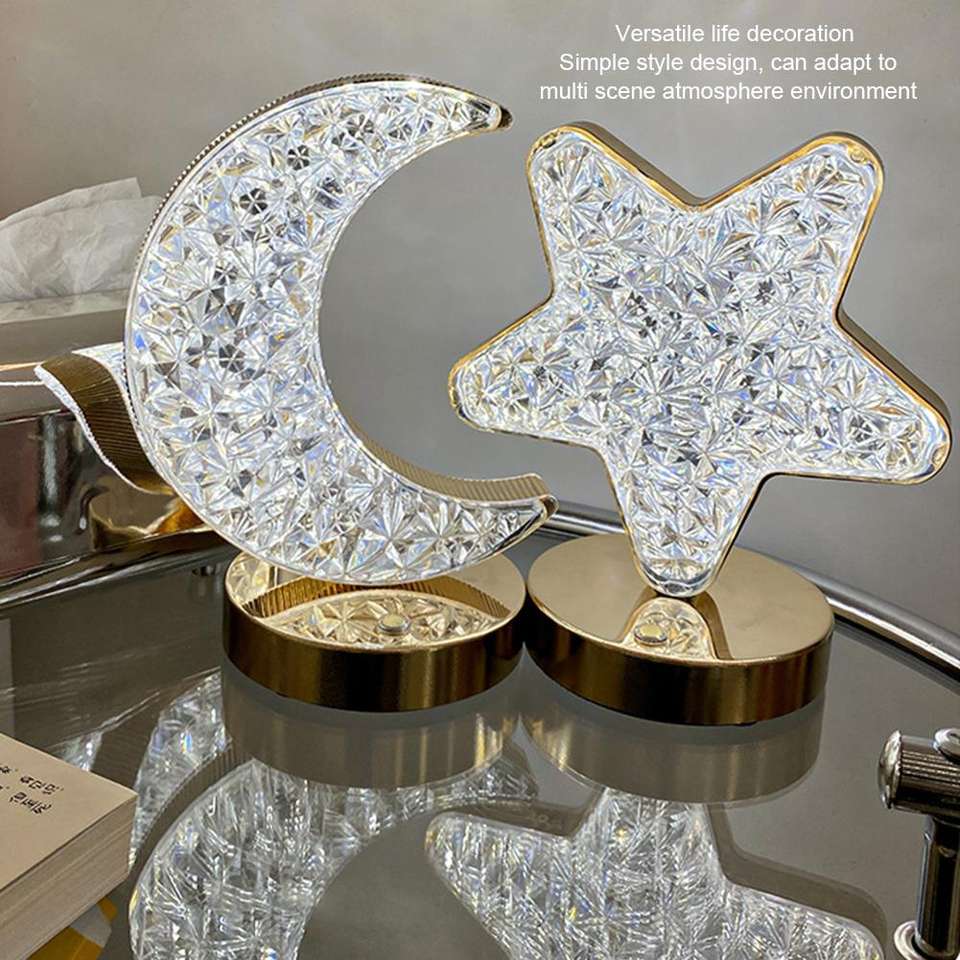 โคมไฟตั้งโต๊ะ LED รูปทรงดวงจันทร์และดวงดาว แบบชาร์จไฟได้ วัสดุโลหะและคริสตัล สัมผัสเปลี่ยนสีได้ 3 สี ใช้เป็นไฟกลางคืนสำหรับตกแต่งบรรยากาศข้างเตียง