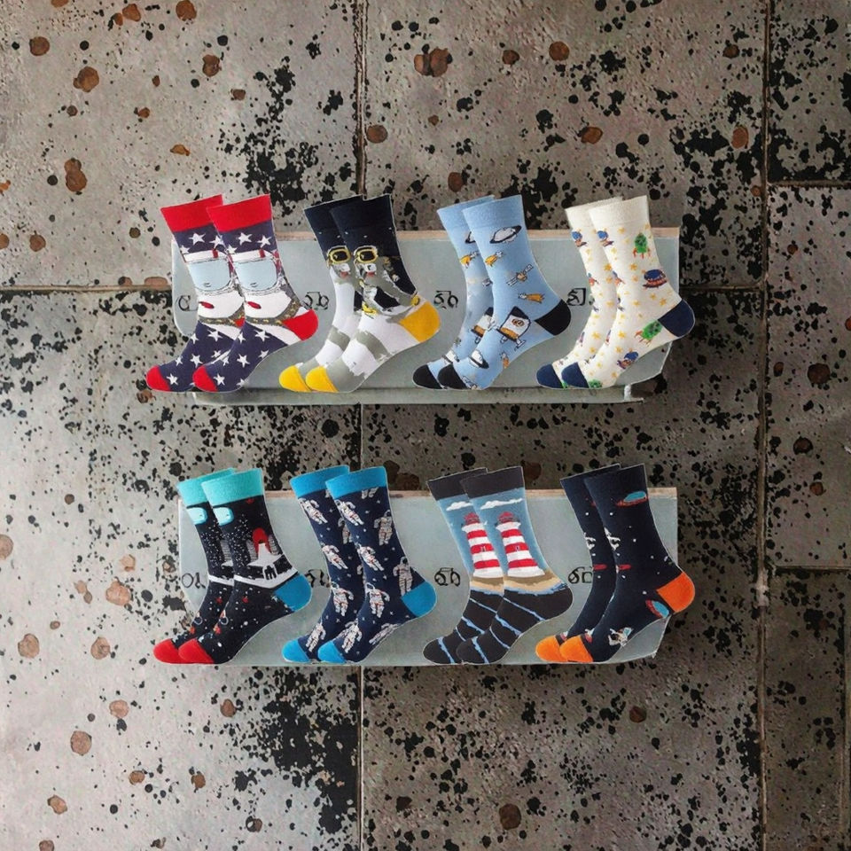 ถุงเท้าลำลองผู้ชายลายแปลกใหม่ สีสันสดใส สนุกสนาน แปลกตา แฟชั่น พร้อมโลโก้รูปคน สำหรับฤดูใบไม้ร่วง