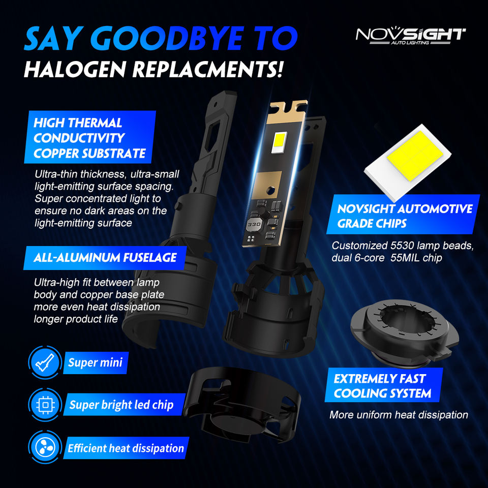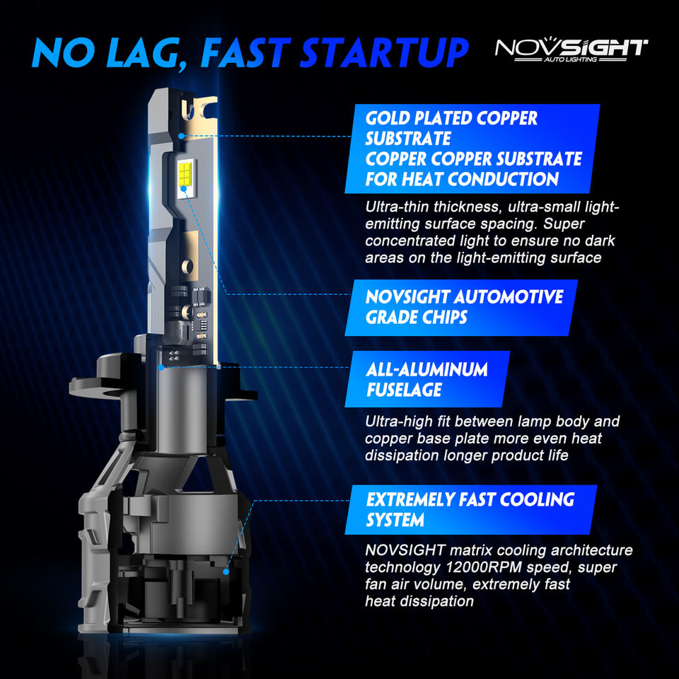หลอดไฟหน้ารถยนต์ Novsight N61 LED ไฟสูง/ต่ำ รุ่น H7/H11/H4 12V 6500K 13000LM ใช้ได้กับรถยนต์ทั่วไป