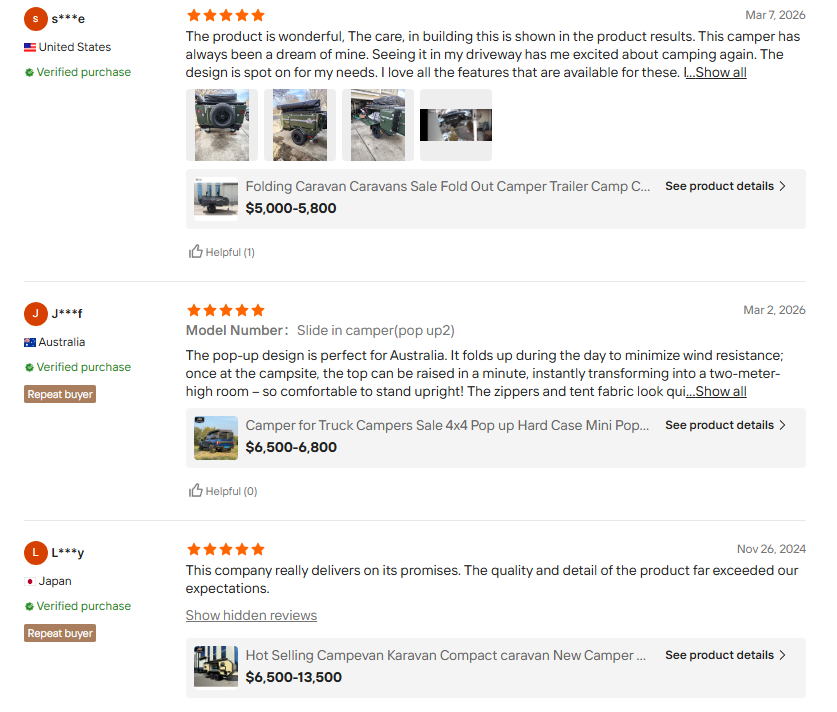 อัตราสูงสุด:Travel Trailer caravan Motorhomes Rvs
