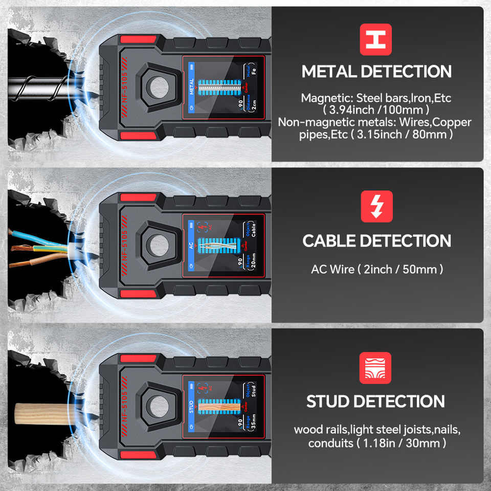 เครื่องสแกนผนัง Noyafa NF-5105 3 in 1 ตรวจจับเหล็ก ไม้ และสายไฟที่มีกระแส | ความแม่นยำสูงและใช้งานง่าย