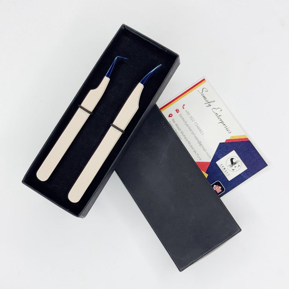 แหนบต่อขนตาสแตนเลสสตีลสีนู้ด ยี่ห้อส่วนตัว ขนาด 10 มม. จับแน่น บางเฉียบ สำหรับต่อขนตาแบบวอลลุ่ม รูปทรงดอลฟิน ใช้งานได้ยาวนาน