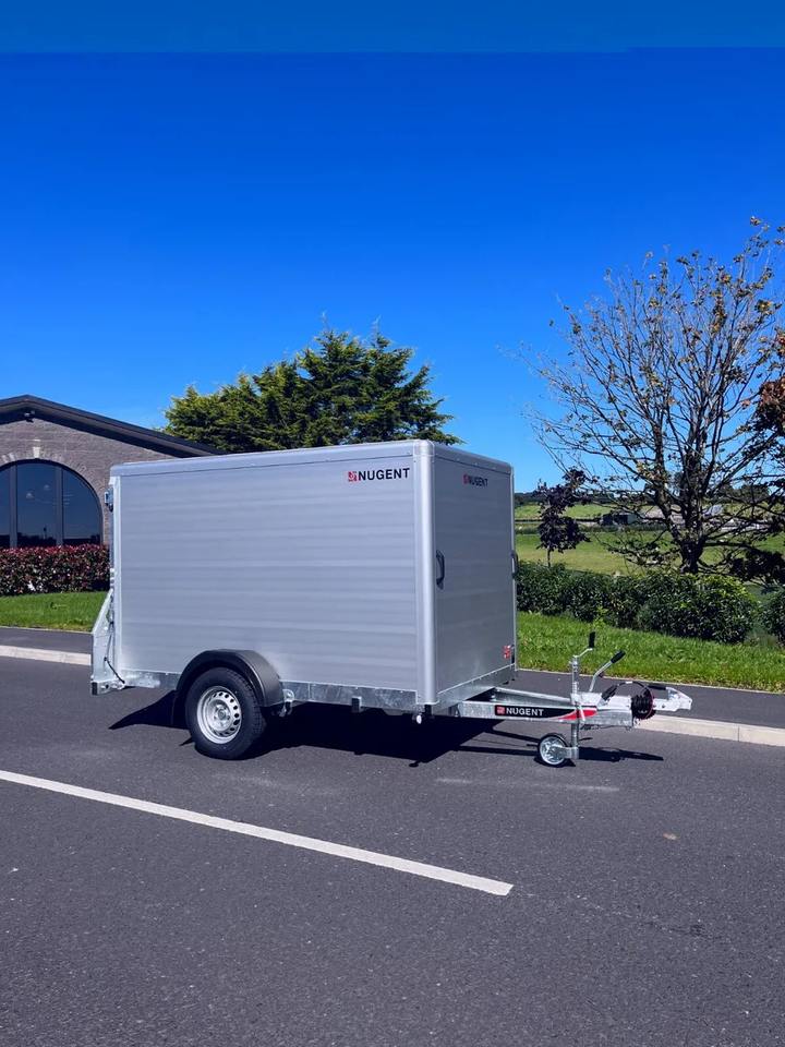 รถพ่วงกึ่งพ่วงแบบเพลาเดียว Nugent 8x5 รับน้ำหนัก 3500 กก. พร้อมระบบเบรก โครงสร้างอะลูมิเนียมเต็มแผ่น ไฟ LED เหล็ก ฝรั่งเศส