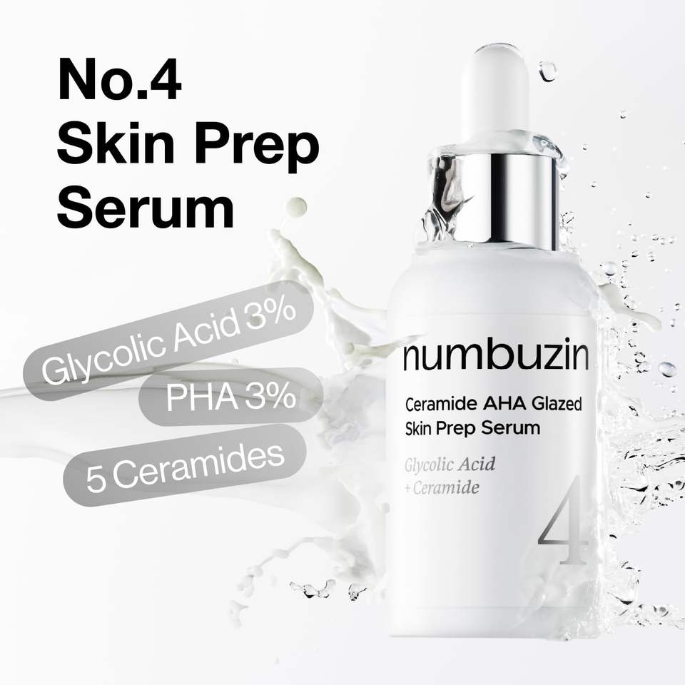 นัมบูซิน หมายเลข 4 เซราไมด์ เอเอชเอ เกลซซ์ สกิน พรีพ เซรั่ม ไบรท์เทนนิ่ง เอ็กซ์โฟลิเอชั่น แบร์ริเออร์ รีแพร์ ไพรเมอร์ เบส สำหรับผิวหมองคล้ำ
