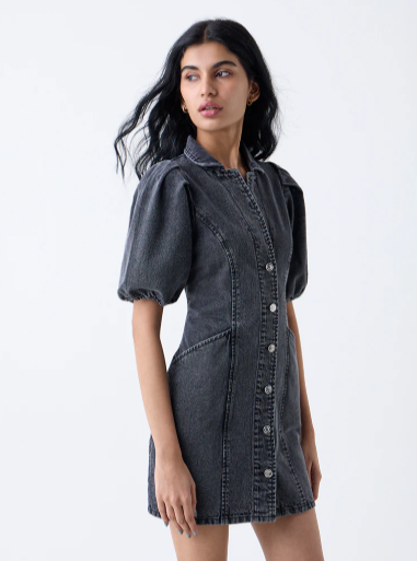 ชุดเดรสทรงเอผ้ายีนส์สีเทา nuon