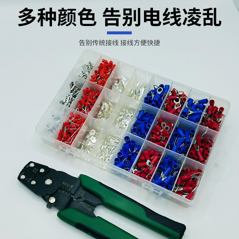 ชุดอุปกรณ์ปลายสายไฟ Nuoyifan 24-in-1 คีมย้ำสายไฟอเนกประสงค์ 1000 ชิ้น กล่องพลาสติก ทองแดงแท้ ตัวเชื่อมต่อแบบปลดเร็ว