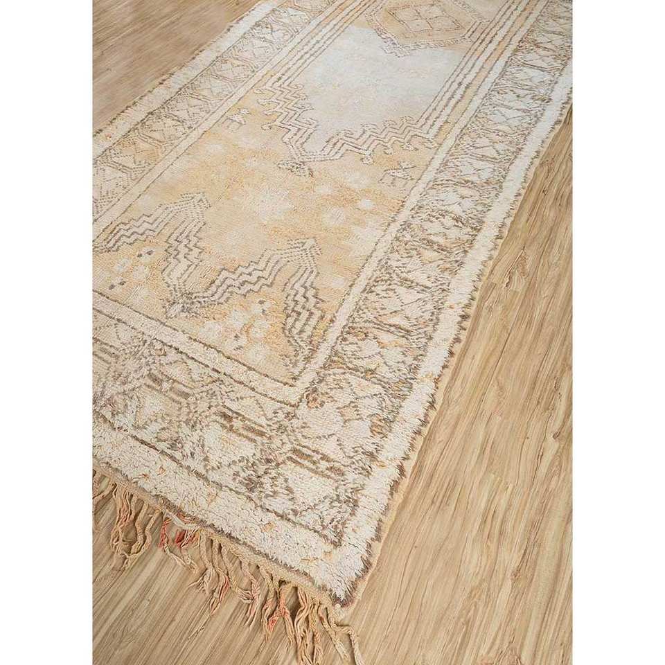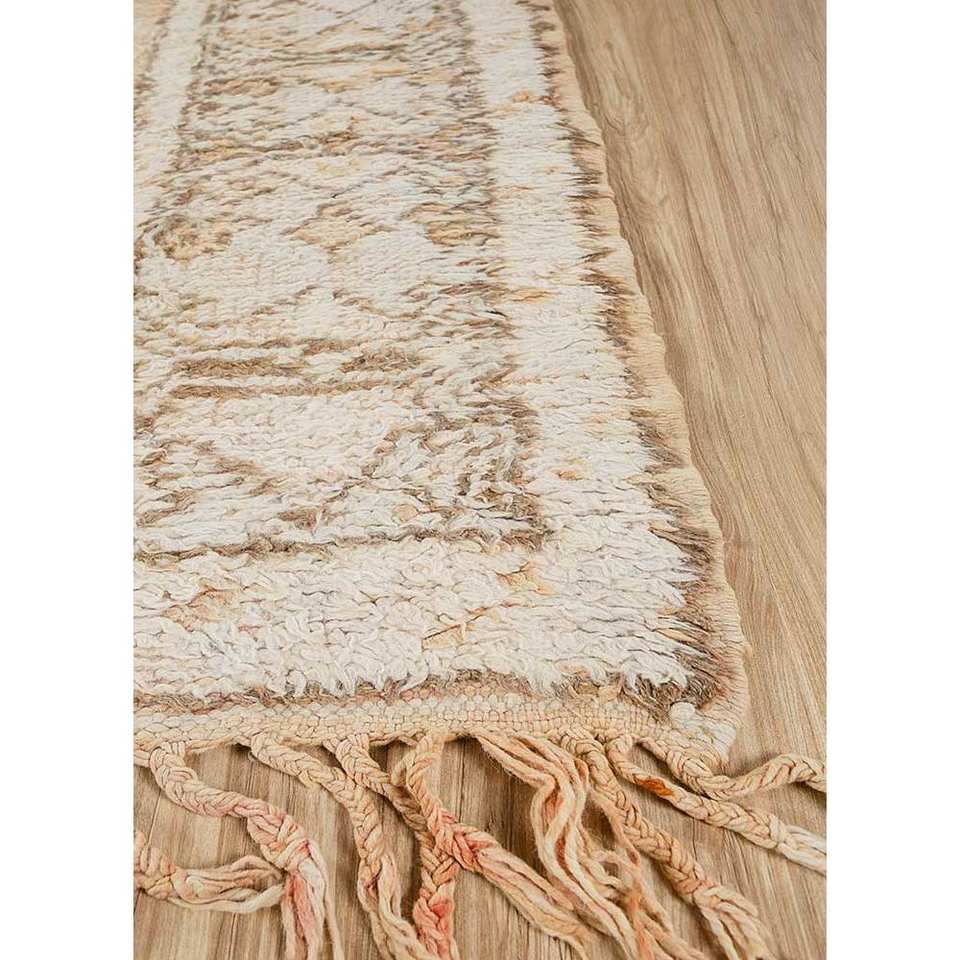 พรมขนสัตว์ถักมือสีเบจและสีน้ำตาลลายเรขาคณิตสำหรับห้องนั่งเล่นและรถยนต์ ขนาด 9x12 รุ่น Pae-4514