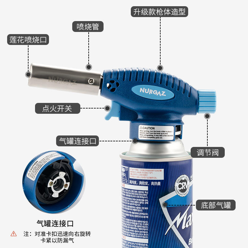 นูร์กาซ ไฟฉายพ่นไฟแบบพกพาสำหรับทำบาร์บีคิวกลางแจ้ง ใช้กับซูชิ การอบ และหัวฉีดพ่นยาฆ่าเชื้อ