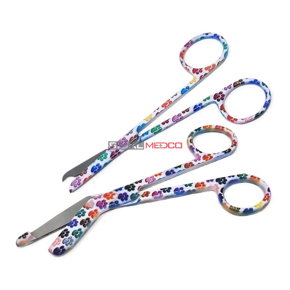 กรรไกรตัดผ้าพันแผลพยาบาล 5.5 นิ้ว กรรไกรเย็บแผล 4.5 นิ้ว ชุด 2 ชิ้น ทำจากสแตนเลสสตีล ใช้งานด้วยมือ ได้รับการรับรองมาตรฐาน CE พร้อมกาวในตัว