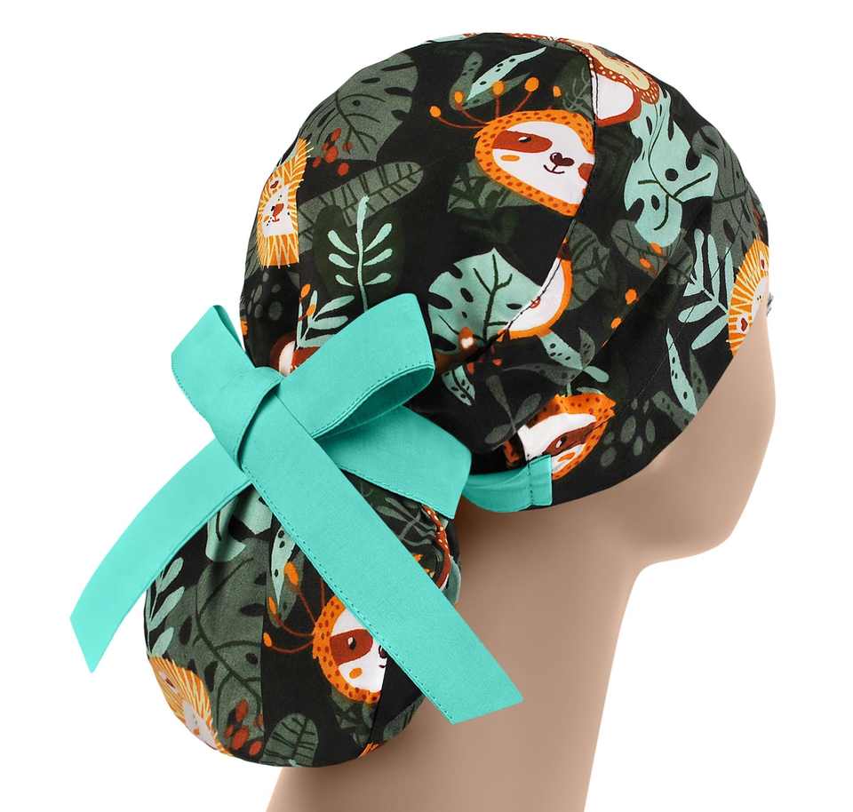 หมวกผ่าตัดหางม้าสำหรับผู้หญิงหมวกผ่าตัดผ้าคอตตอนพร้อมกระดุมหมวกขัดหางม้าสำหรับผู้หญิงหมวกทำงานในโรงพยาบาล