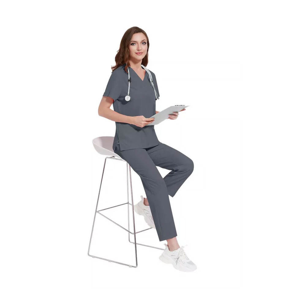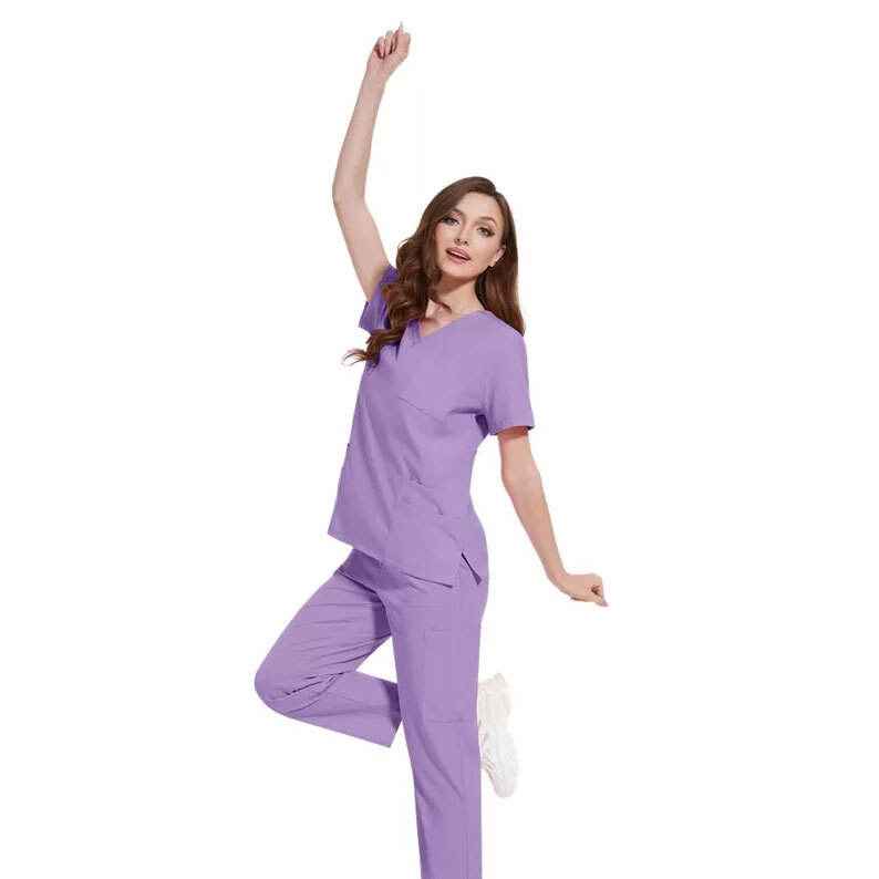 ชุดพยาบาลแขนสั้นคอวีแขนสั้นคอวีแขนสั้นสำหรับผู้หญิงชุดเครื่องแบบพยาบาลตามสั่ง