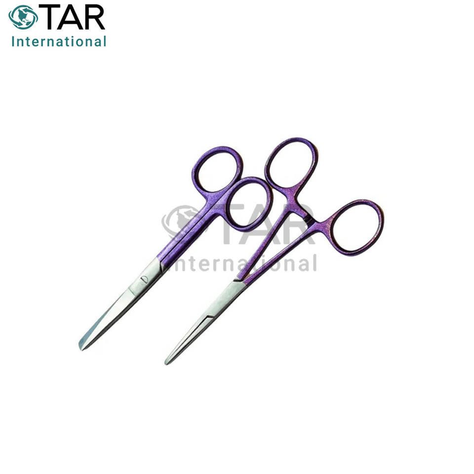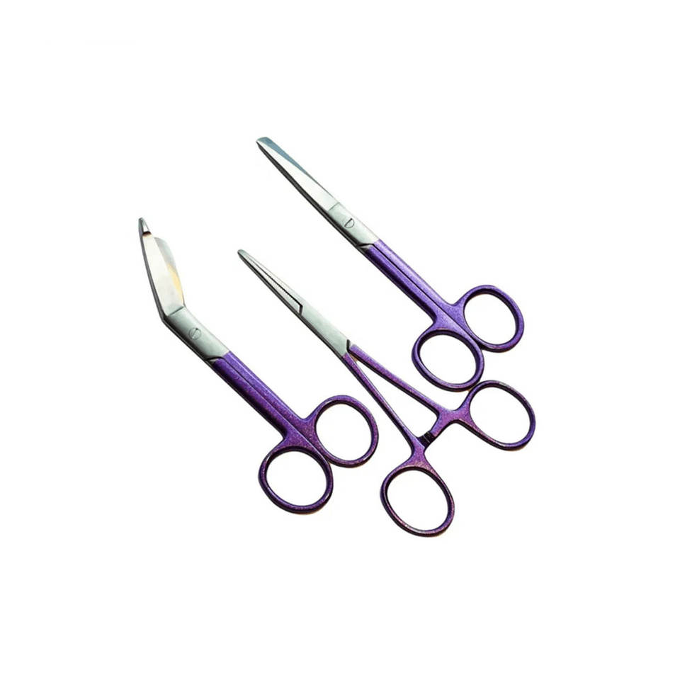 ชุดกรรไกรพยาบาล สีม่วงเมทัลลิก ชุด 3 ชิ้น กรรไกรตัดผ้าพันแผลลิสเตอร์ คีมหนีบห้ามเลือด ดีไซน์ตรง สีม่วง สำหรับการผ่าตัด