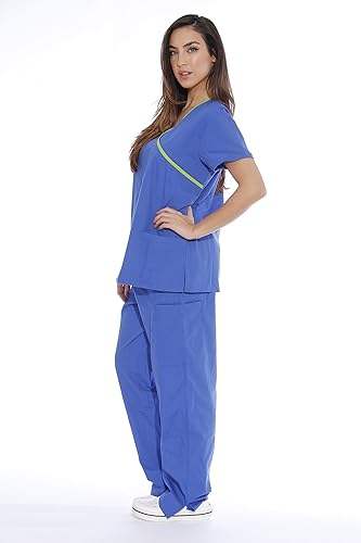 ชุดยูนิฟอร์มพยาบาลสำหรับผู้หญิง ชุดเสื้อคอวีและกางเกงผ้าทวิลยืดหยุ่น ระบายอากาศได้ดี โดย Waseem Impex