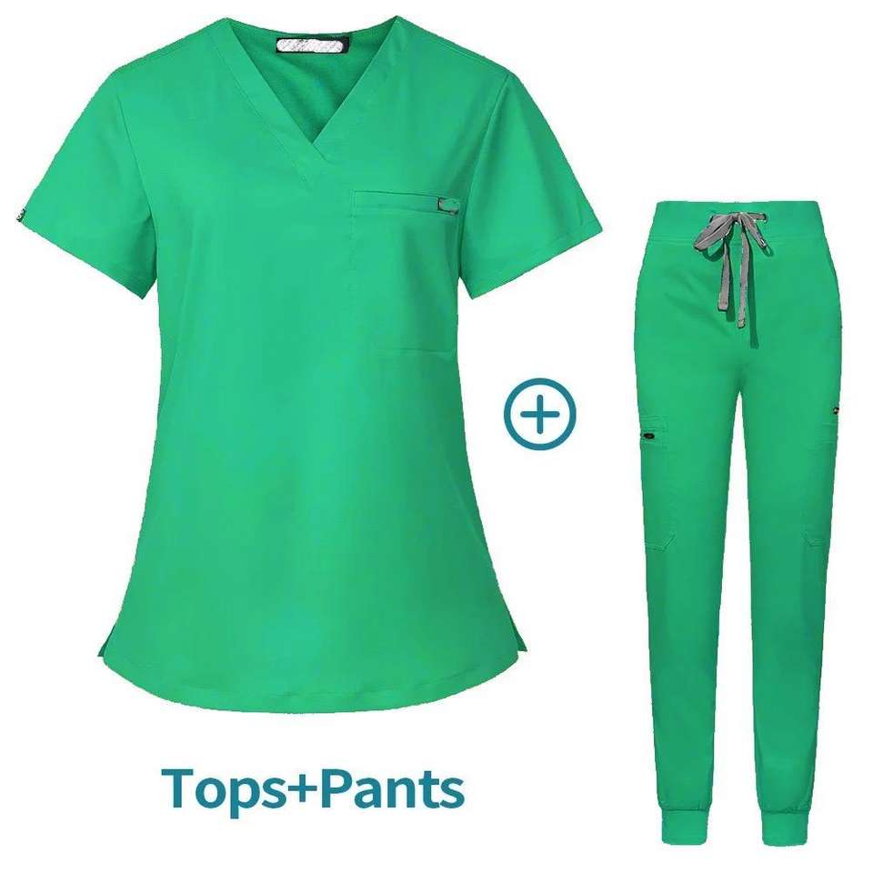 ชุดพยาบาลเสื้อคอวีและกางเกงพยาบาลพร้อมตะเข็บด้านข้างเพื่อการออกแบบเฉพาะสำหรับผู้เชี่ยวชาญทางการแพทย์