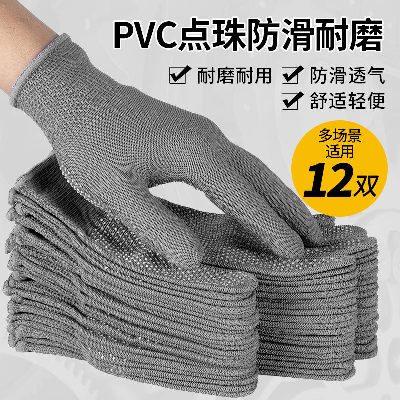 ถุงมือทำงานไนลอนกันลื่น 13 เข็ม แบบสัมผัสหน้าจอได้ สำหรับงานก่อสร้าง โลจิสติกส์ และการจัดการ