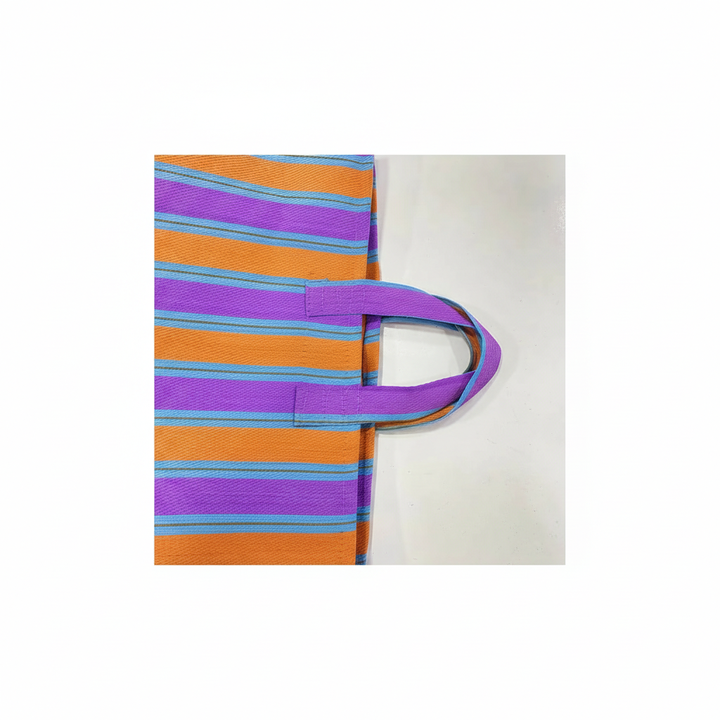 ถุงช้อปปิ้งซูเปอร์มาร์เก็ตแบบใช้ซ้ำได้ ผลิตจากไนลอน PP ลายทาง เป็นมิตรกับสิ่งแวดล้อม ทำจากพลาสติกโพลีโพรพิลีนรีไซเคิล ทอด้วยมืออย่างยั่งยืน