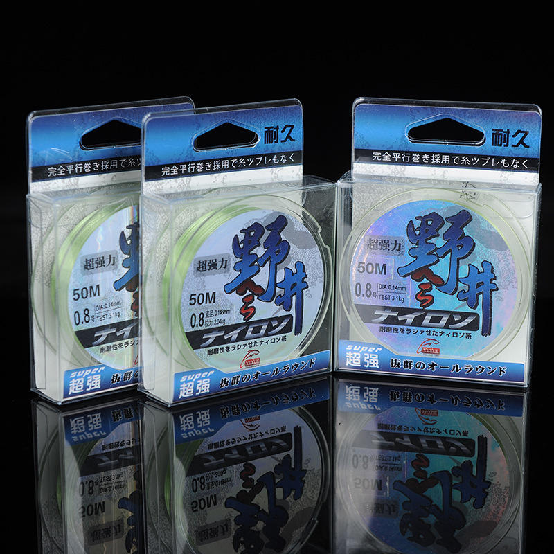 สายเอ็นตกปลาไนลอนแบบเส้นเดี่ยว 50 ม. ความแข็งแรงสูง สีใส เขียว ส้ม น้ำตาลแดง สายหลักสำหรับอุปกรณ์ตกปลา