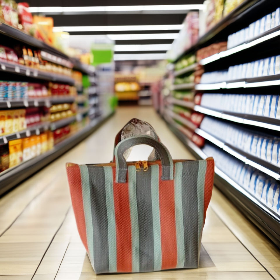 ถุงช้อปปิ้งผ้าไนลอน PP ลายทาง ใช้ซ้ำได้ เป็นมิตรกับสิ่งแวดล้อม สี/ขนาดสั่งทำได้ ขนาดใหญ่พิเศษ ผลิตในอินเดีย มีตัวเลือกแบบขายส่ง