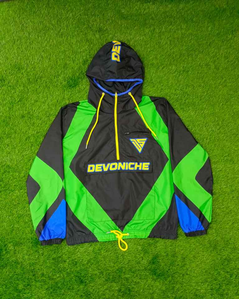 ไนลอน / โพลีเอสเตอร์บล็อกสีเสื้อกันลมครึ่งซิปขึ้นเสื้อแจ็คเก็ตฤดูร้อนฤดูใบไม้ผลิสวมเสื้อกันลมผู้ชายเสื้อแจ็คเก็ตแบบกําหนดเอง