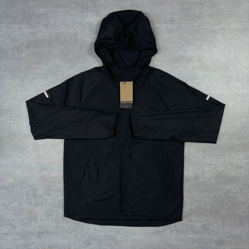 ชุดวอร์มผ้าไนลอนโพลีเอสเตอร์สำหรับผู้ชายชุดวิ่งกลางแจ้งกันน้ำมีกระเป๋าชุดกันลมสะท้อนแสง