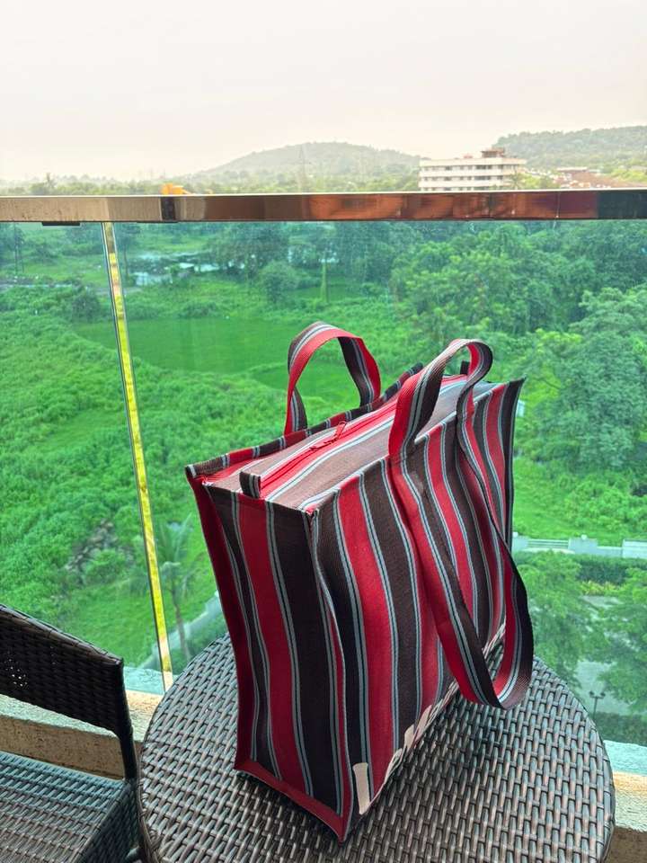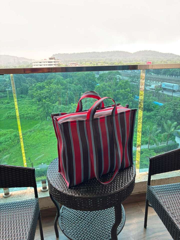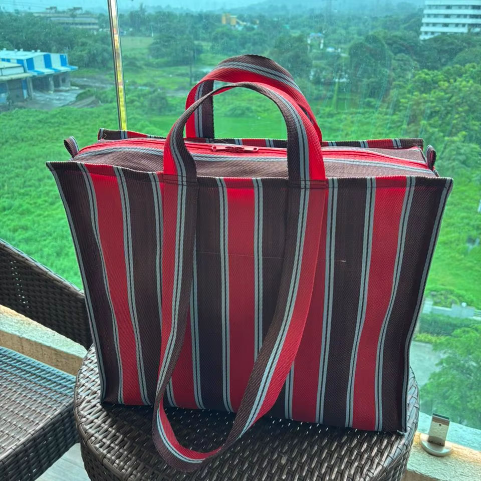 ถุงช้อปปิ้ง PP ทอขนาดใหญ่พิเศษ รีไซเคิล ผลิตจากโพลีโพรพิลีน ใช้ซ้ำได้ เป็นมิตรกับสิ่งแวดล้อม หูหิ้วเชือกลายทาง ปิดด้วยซิป เหมาะสำหรับซุปเปอร์มาร์เก็ต