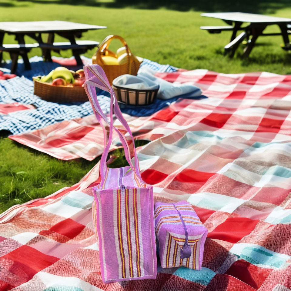 กระเป๋าเครื่องสำอางลายทางแบบใช้ซ้ำได้ ผลิตจากไนลอนรีไซเคิล เป็นมิตรกับสิ่งแวดล้อม ยั่งยืน เหมาะสำหรับใส่ของในซูเปอร์มาร์เก็ต