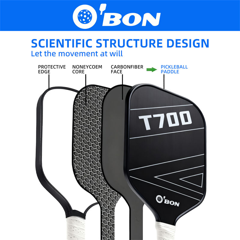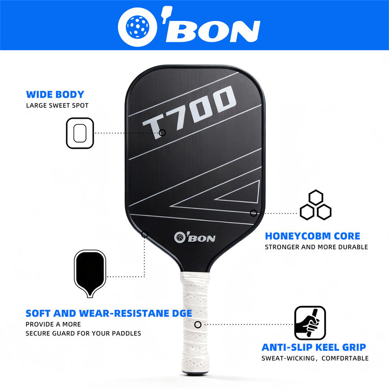 Ofon ODM ไม้พายพิเคิลบอลผลิตตามสั่ง T700 16มม. พื้นผิวคาร์บอนไฟเบอร์สำหรับการฝึกซ้อมมาตรฐานที่ผ่านการรับรองจาก usapa