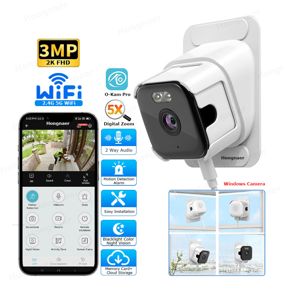 กล้องวงจรปิดไร้สาย O Kam Pro 3MP แบบสองย่านความถี่ พร้อม Alexa ติดตั้งง่าย ระบบรักษาความปลอดภัยแบบเน็ตเวิร์ก IPC พร้อมระบบมองเห็นในเวลากลางคืนด้วยแสงดำ