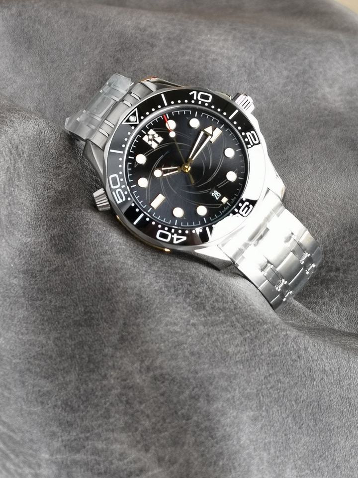 O-M-G seahorse 210.22.42.20.004 James Bond นาฬิกาเซรามิกสีดำหมุนได้หน้าปัดสีขาวดูหรูหราดำน้ำ