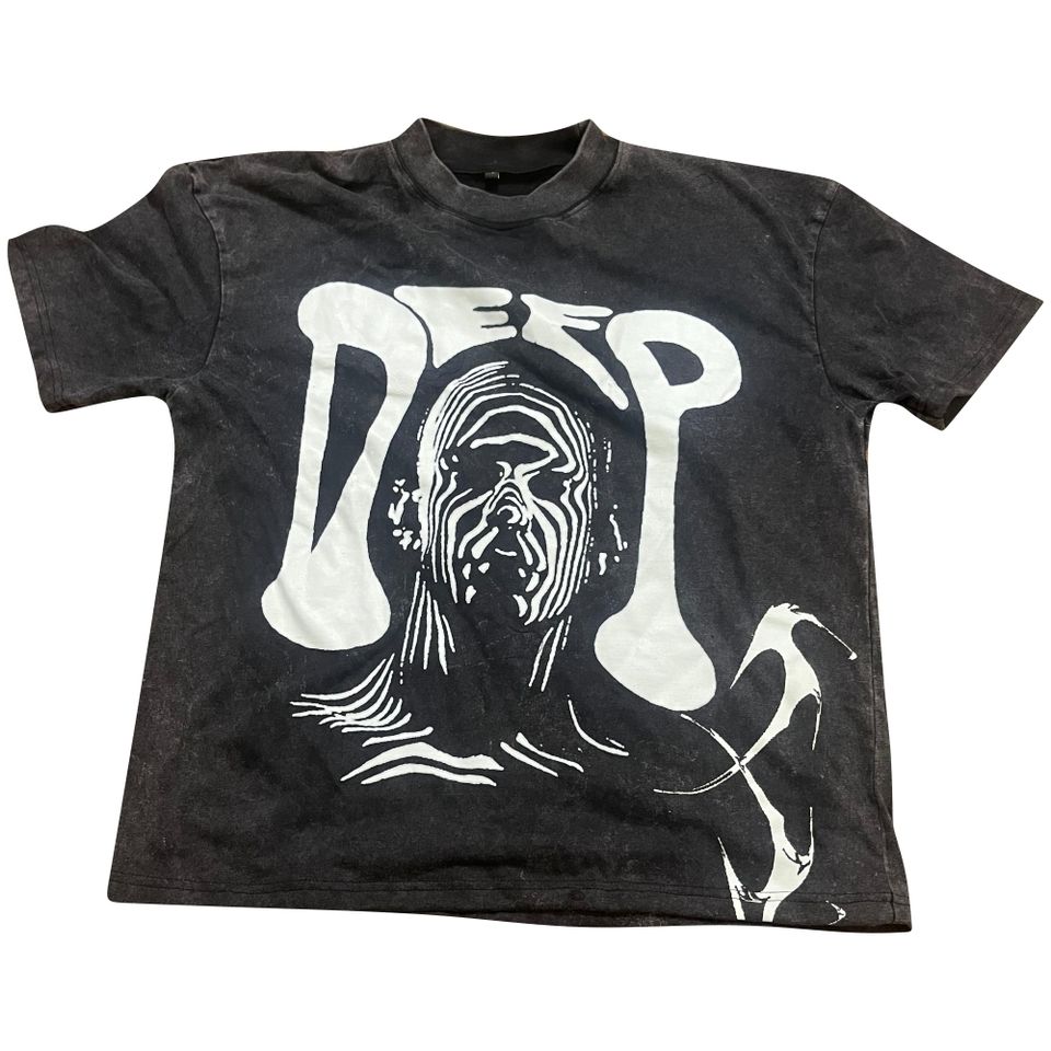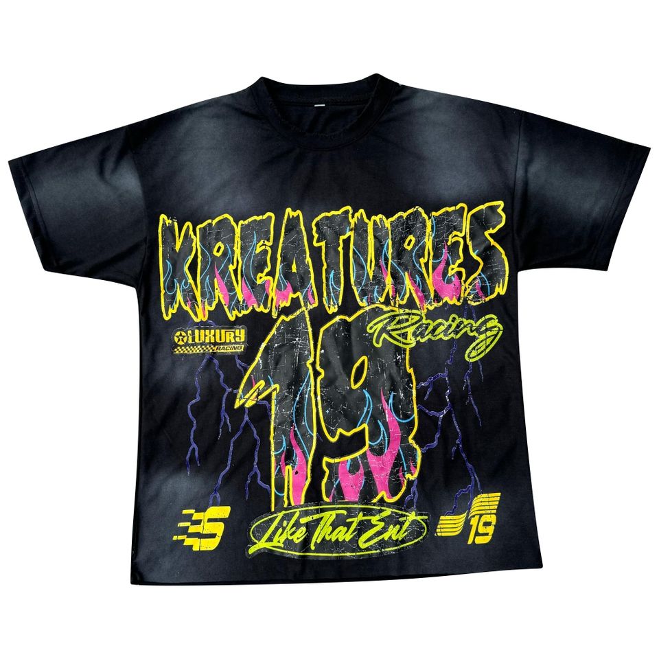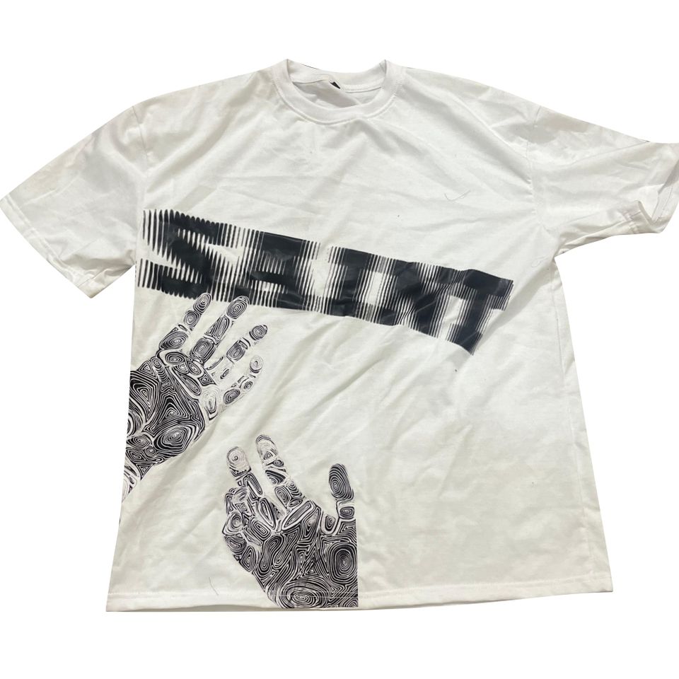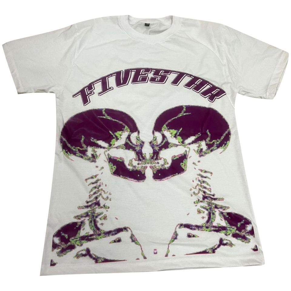 เสื้อยืดผ้าฝ้าย100% ไหล่ตกขนาดใหญ่สำหรับผู้ชายพิมพ์ลายจอใหญ่