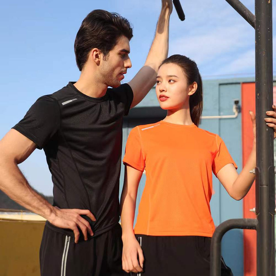 เสื้อยืดแขนสั้นคอกลมสำหรับวิ่งตอนกลางคืนเรืองแสง
