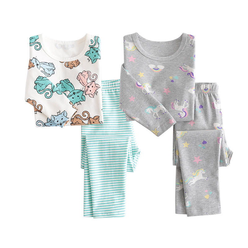 ชุดนอนเด็กแขนยาว OA 60 วัน ชุดนอนเด็กผู้หญิงแบบสวมสบาย ผ้าฝ้ายเนื้อนุ่ม ชุดนอนเด็กผู้หญิง 2 ชิ้น ชุดนอนเด็กผู้หญิง