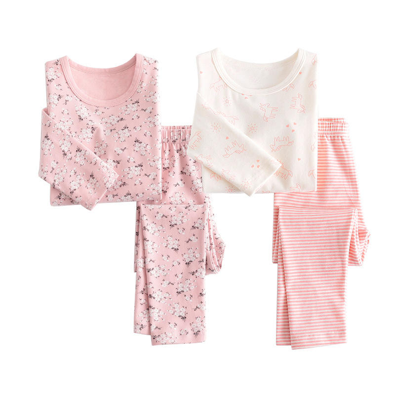ชุดนอนเด็กแขนยาว OA 60 วัน OEM ODM แบบสวมใส่สบาย ชุดนอนผ้าฝ้ายแสนสบาย ชุดนอนเด็กผู้หญิง 2 ชิ้น ชุดนอนเด็กผู้หญิง