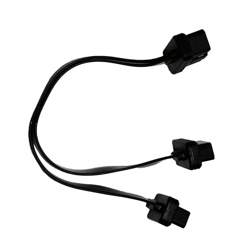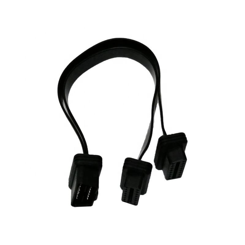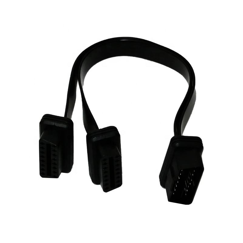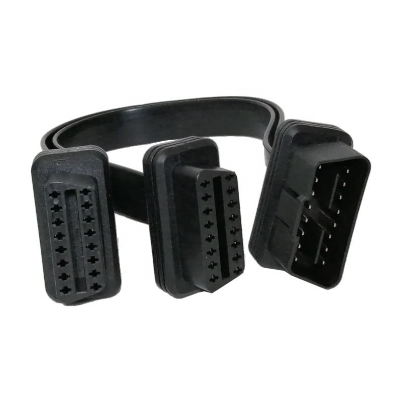 OBD2 OBD II 16Pin สายเคเบิลอะแดปเตอร์ต่อขยายสายเคเบิลริบบิ้นแยกรูปตัว Y ตัวผู้เป็นตัวเมียสองตัว