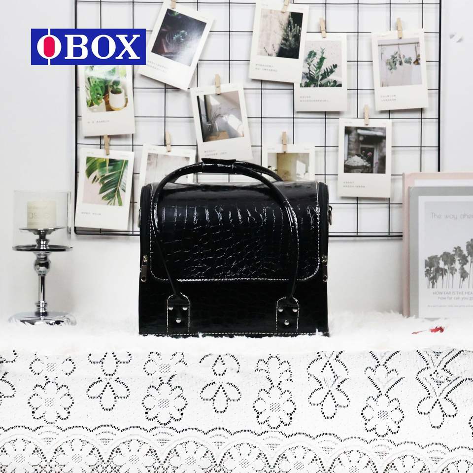 กระเป๋าเครื่องสำอางลายจระเข้ OBOX สีดำ กระเป๋าหนังกันน้ำ สำหรับจัดเก็บของใช้ในบ้าน ฤดูใบไม้ผลิ 2022