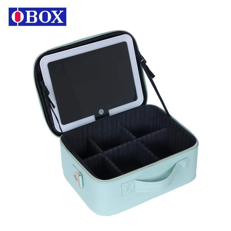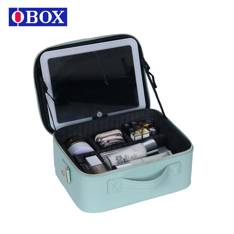 กล่องจัดระเบียบเครื่องสำอาง OBOX ขนาด 12 นิ้ว สีเขียวมิ้นท์ พร้อมกระจกและลิ้นชัก สำหรับจัดเก็บเครื่องสำอาง ใช้สำหรับเดินทาง