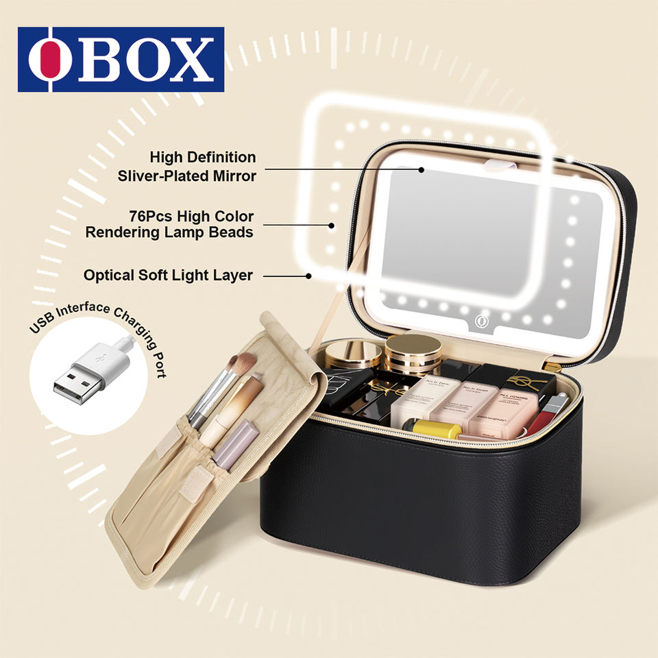 กล่องจัดระเบียบเครื่องสำอาง OBOX พร้อมกระจก HD 3 โทนสี สำหรับศิลปินริมทาง กระเป๋าทนทานสำหรับการสร้างสรรค์กลางแจ้ง