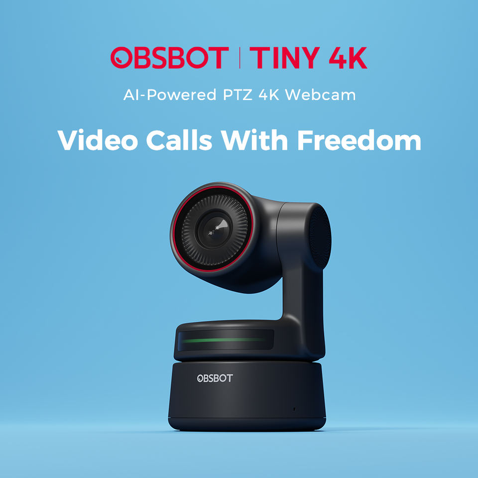 OBSBOT Tiny 4K กล้องเว็บแคม AI พร้อมระบบติดตามอัตโนมัติ ปรับกรอบภาพอัตโนมัติ ควบคุมด้วยท่าทาง รองรับ HDR ไมโครโฟนแบบ Omni-Directional คู่ สำหรับการบันทึกและสตรีมมิ่ง