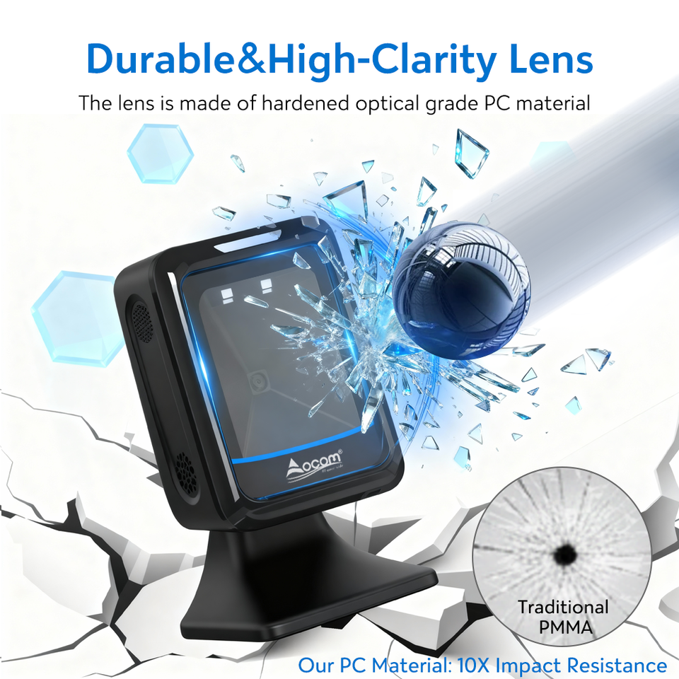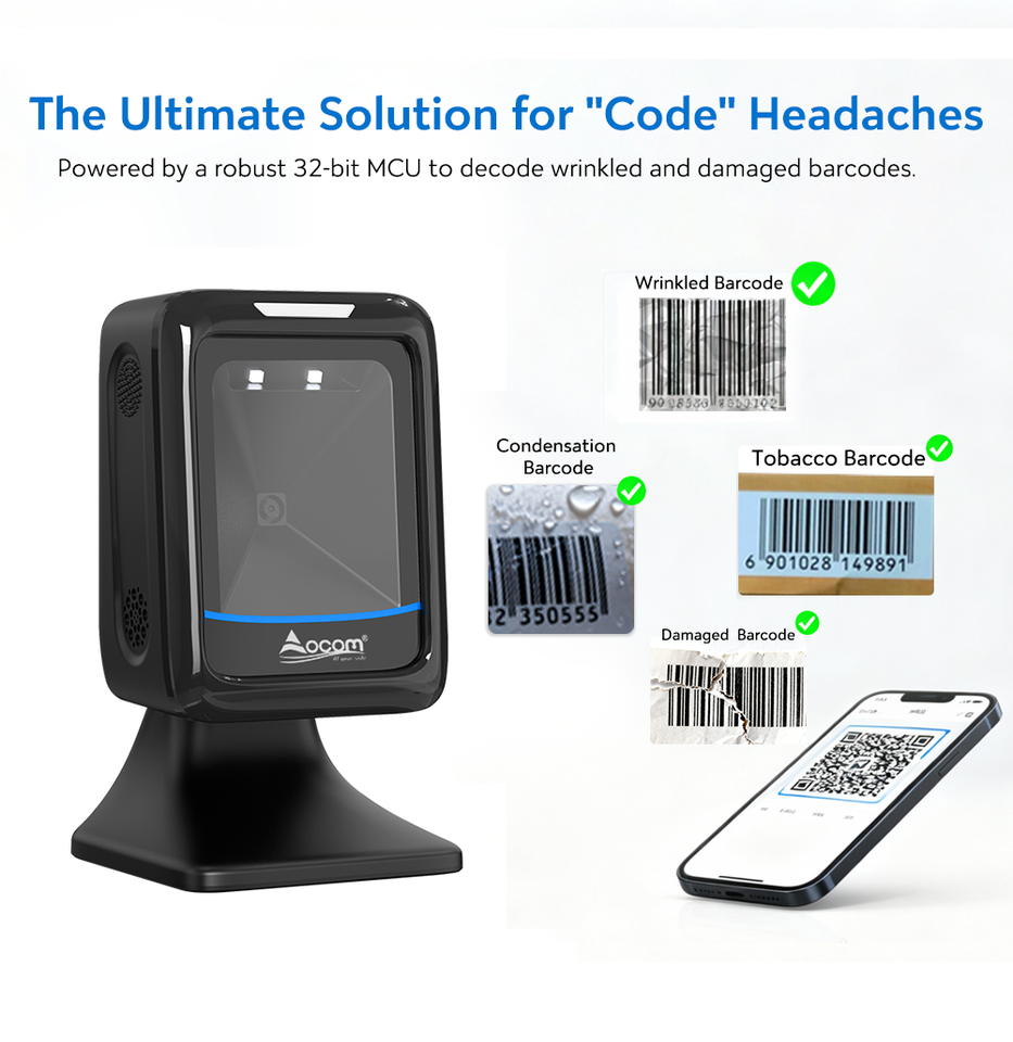 เครื่องสแกนบาร์โค้ดแบบตั้งโต๊ะ OCBS-T288 OCOM แบบออมนิไดเรคชันแนล 2D/1D สแกนรวดเร็วเพื่อระบบขายหน้าร้านที่มีประสิทธิภาพ