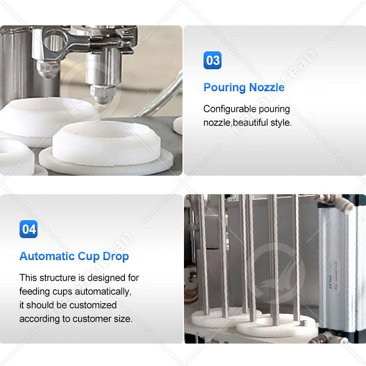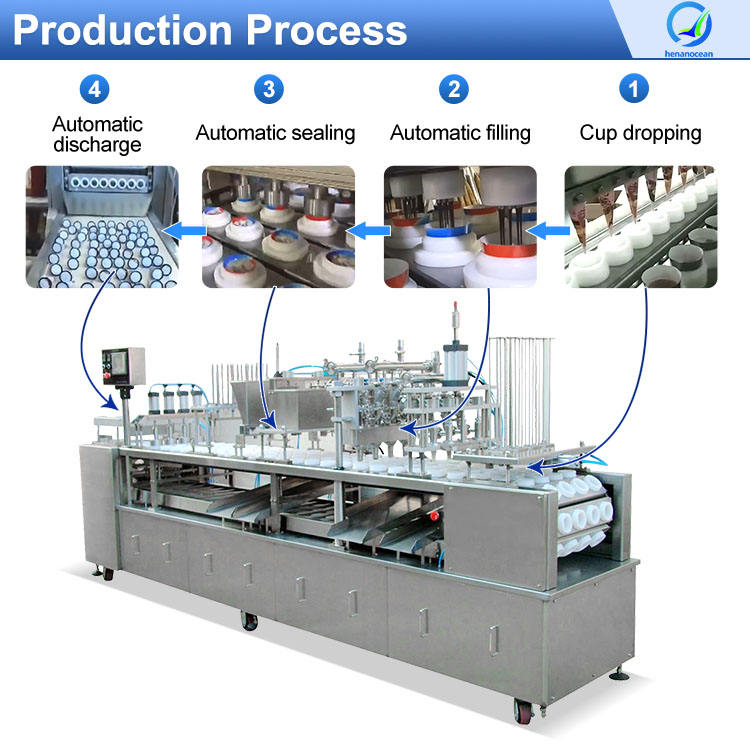 เครื่องซีลถ้วยเยลลี่อัตโนมัติสำหรับมหาสมุทรเครื่องบรรจุโยเกิร์ต kcup กาแฟพ็อดเครื่องเติมไอศกรีมสำหรับน้ำผึ้ง