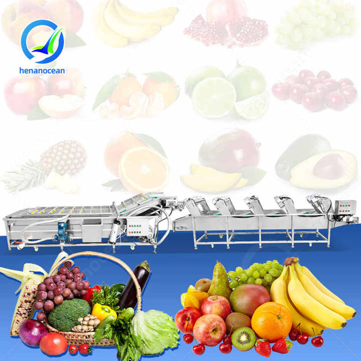 เครื่องล้างและอบแห้งผลไม้แบบอัตโนมัติ OCEAN พร้อมสายการผลิตสำหรับบรรจุภัณฑ์ เครื่องล้างและอบแห้งแครอทสำหรับผัก