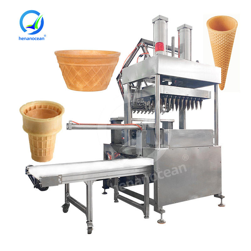 เครื่องทำไอศกรีมทรงกรวยเพื่อการค้าเครื่องอบขนมทรงกรวยสำหรับบิสกิตในมหาสมุทร