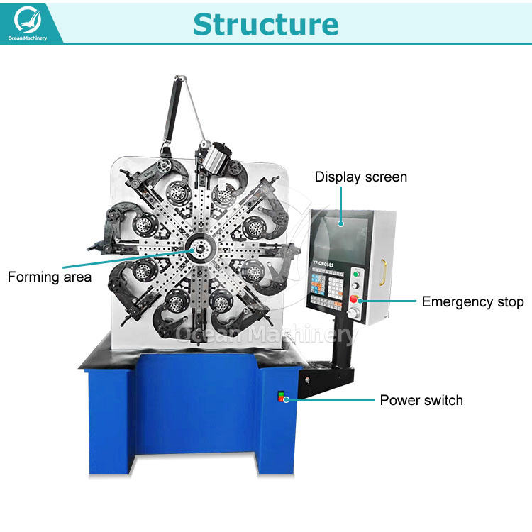 เครื่องกดสปริงกดโค้งสำหรับทำสปริงกดสายจัมเปอร์ขนาดเล็กสร้างแรงกระแทกสำหรับทำสปริงรูปร่างที่แตกต่างกันมหาสมุทร