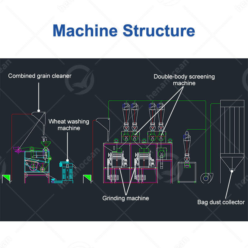 เครื่องผลิตแป้งข้าวโพดโอเชียน สายการผลิตแป้งสาลี เครื่องบดข้าวโพดสำหรับขายในมาลาวี