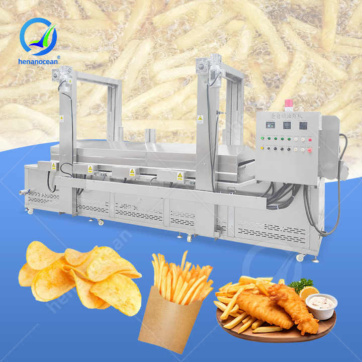 เครื่องทอดกล้วยฉาบอัตโนมัติ OCEAN เครื่องทอดกล้วยฉาบ เครื่องทอดมันฝรั่งแบบต่อเนื่อง