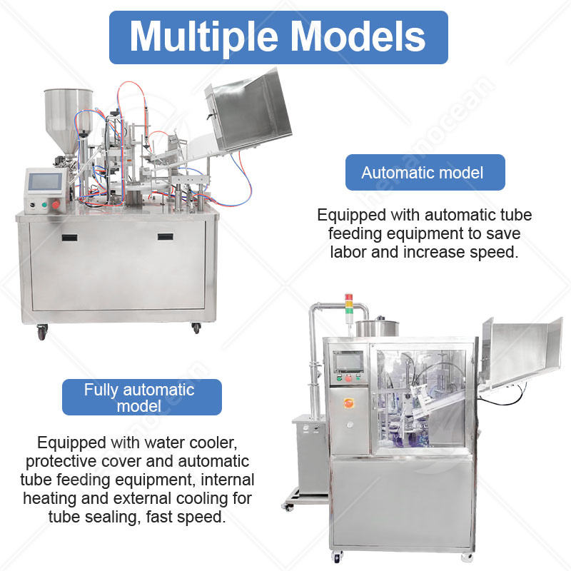 เครื่องบรรจุและปิดผนึกหลอดกึ่งอัตโนมัติ OCEAN สำหรับการใช้งานในอุตสาหกรรมเครื่องสำอาง อาหาร เคมี ของเหลวข้นหนืด เจล แชมพู แยม น้ำผึ้ง