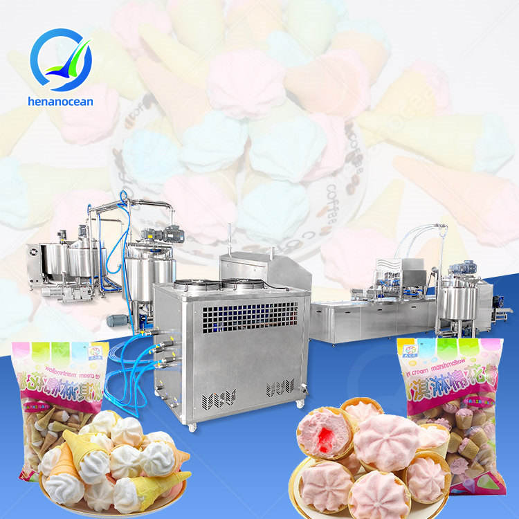 OCEAN Wholesale Ice Cream Cone Cotton Candy Machine Chocolate Center Filled Marshmallow Production Line