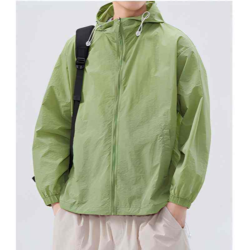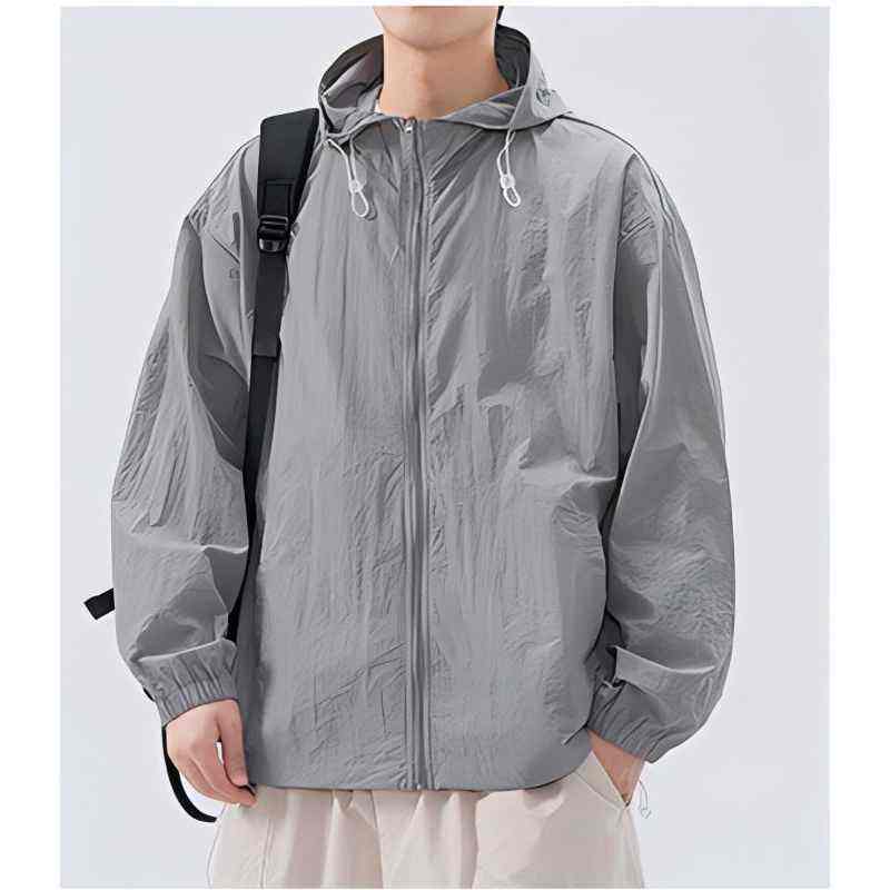 เสื้อแจ็คเก็ตกันลมแบบมีฮู้ด ODM ดีไซน์ใหม่ ระบายอากาศได้ดี ผลิตจากผ้าโพลีเอสเตอร์ทนทาน เหมาะสำหรับกิจกรรมกลางแจ้ง พร้อมโลโก้ด้านหน้า