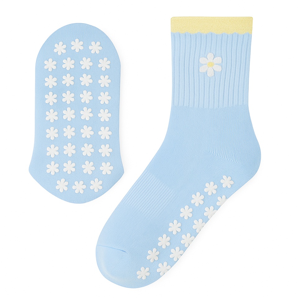 ถุงเท้าสำหรับเล่นพิลาทีสกันลื่นสำหรับผู้หญิงถุงเท้าลายดอกเดซี่หอยเชลล์ระบายอากาศได้ดีดีไซน์น่ารักสำหรับใส่ในบ้านและโยคะฤดูใบไม้ร่วงทุกวัน
